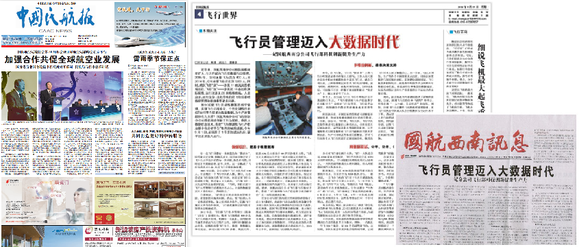 • 获行业媒体报道《中国民航报》2016年9月19日专版介绍,《中国航空》和《国航西南讯息》头版转载。